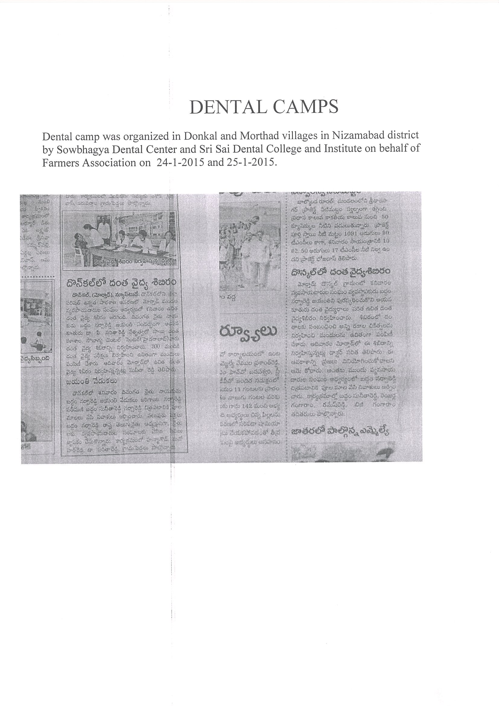 The free Dental Camp was organised on behalf of Rythu Sangam (MORTHAD VILLAGE, NIZAMABAD DISTICT) and Sowbhagya Dental Center (Banjara Hills) by Dr. Saritha and Dr. Krishna on 02/08/2016.